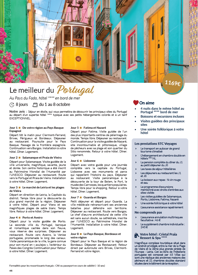 STC VOYAGES  immatriculée à SAINT-ETIENNE N° IM042110008 – SARL au capital social de 22 867 € – Siège Social 8